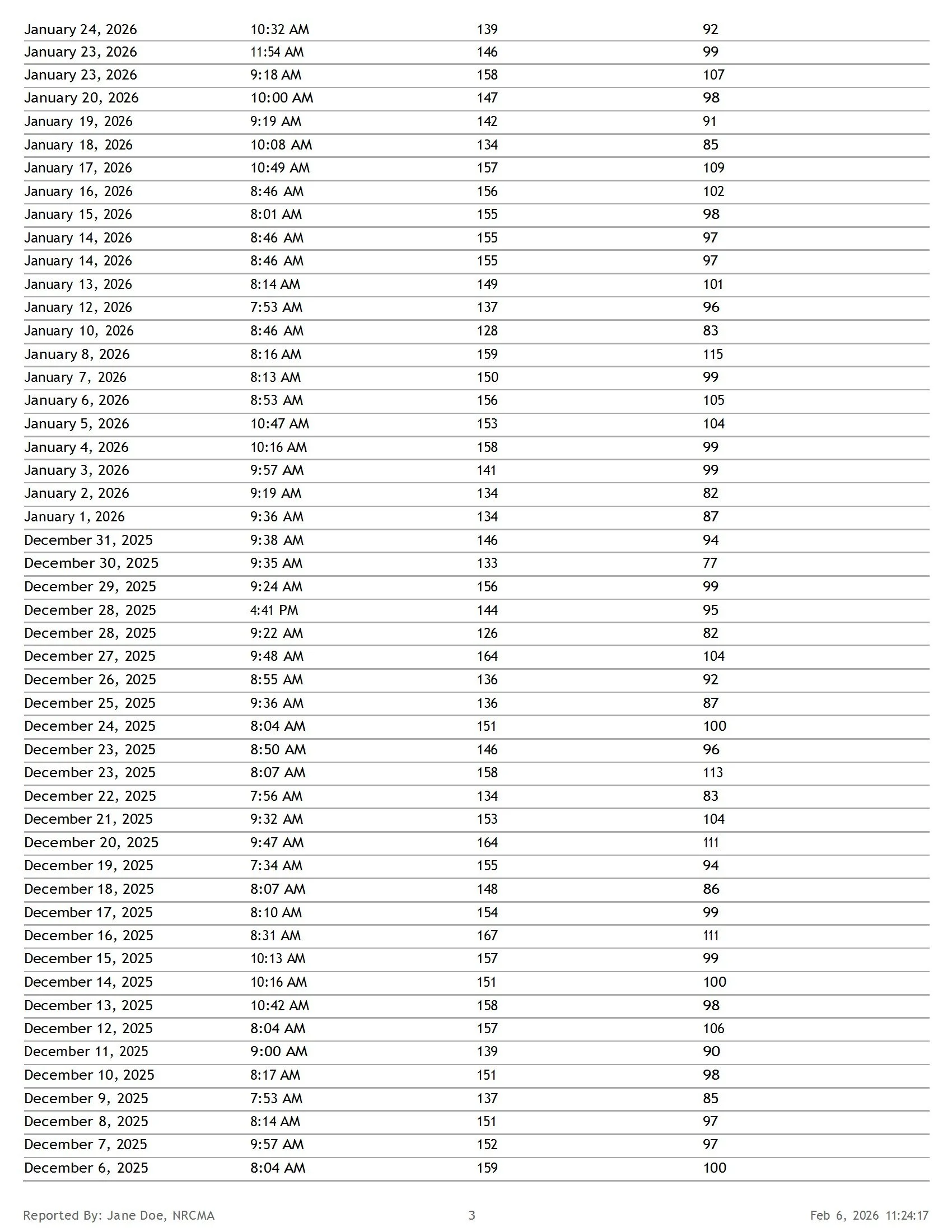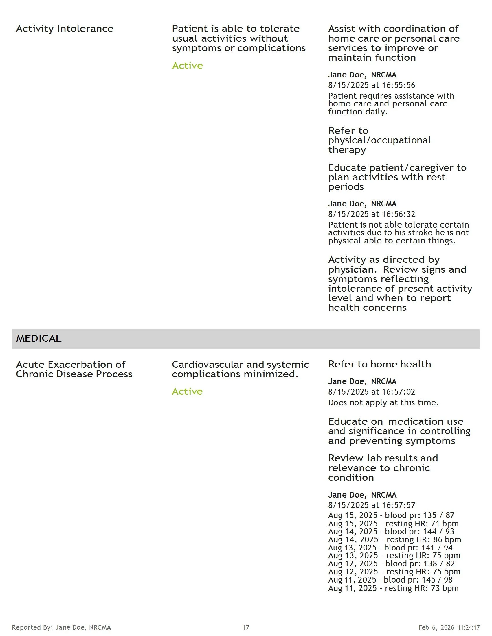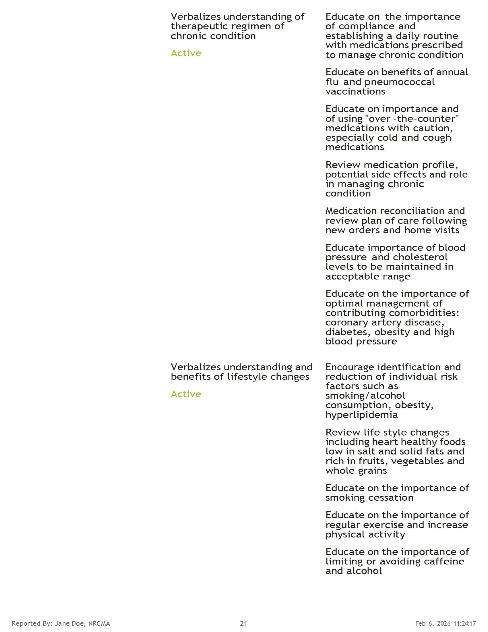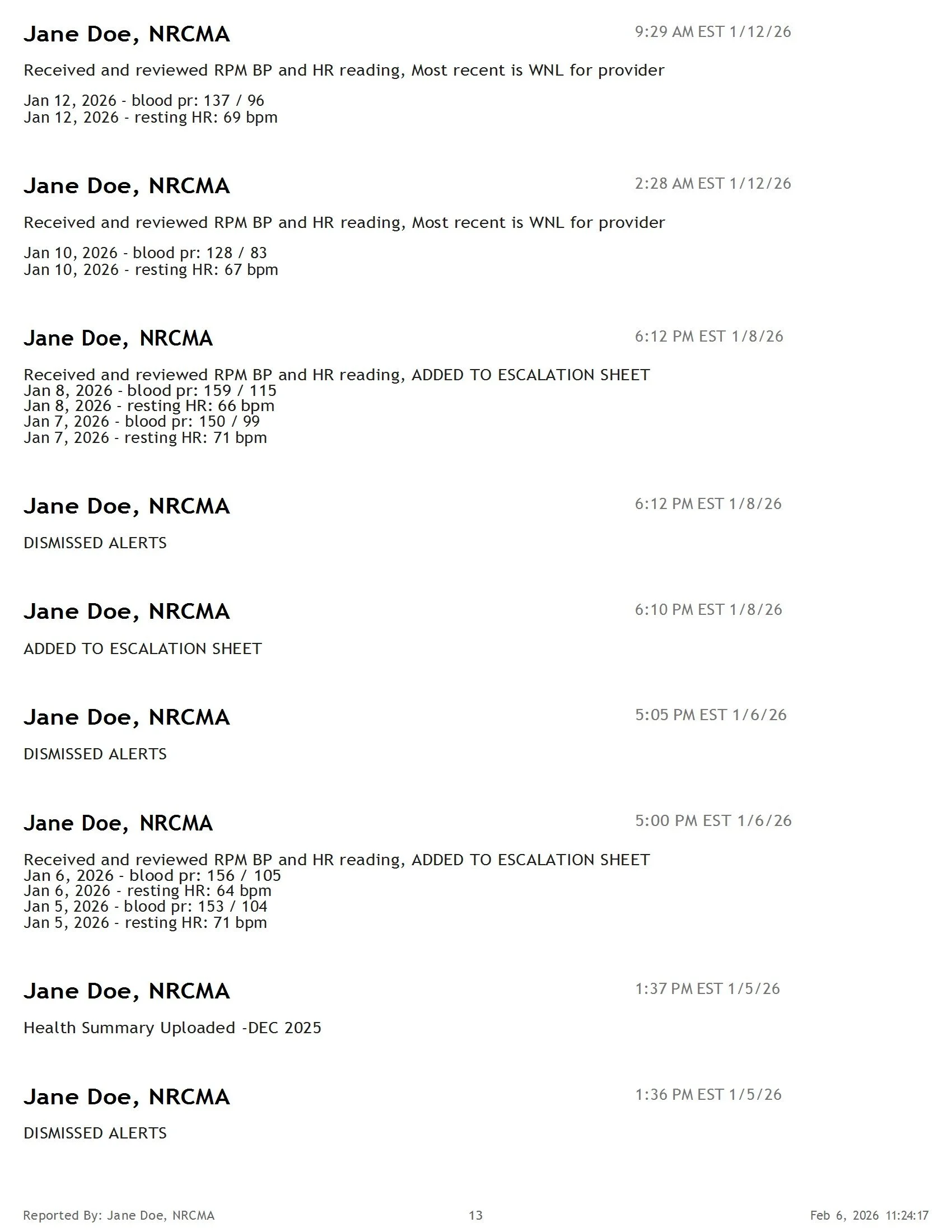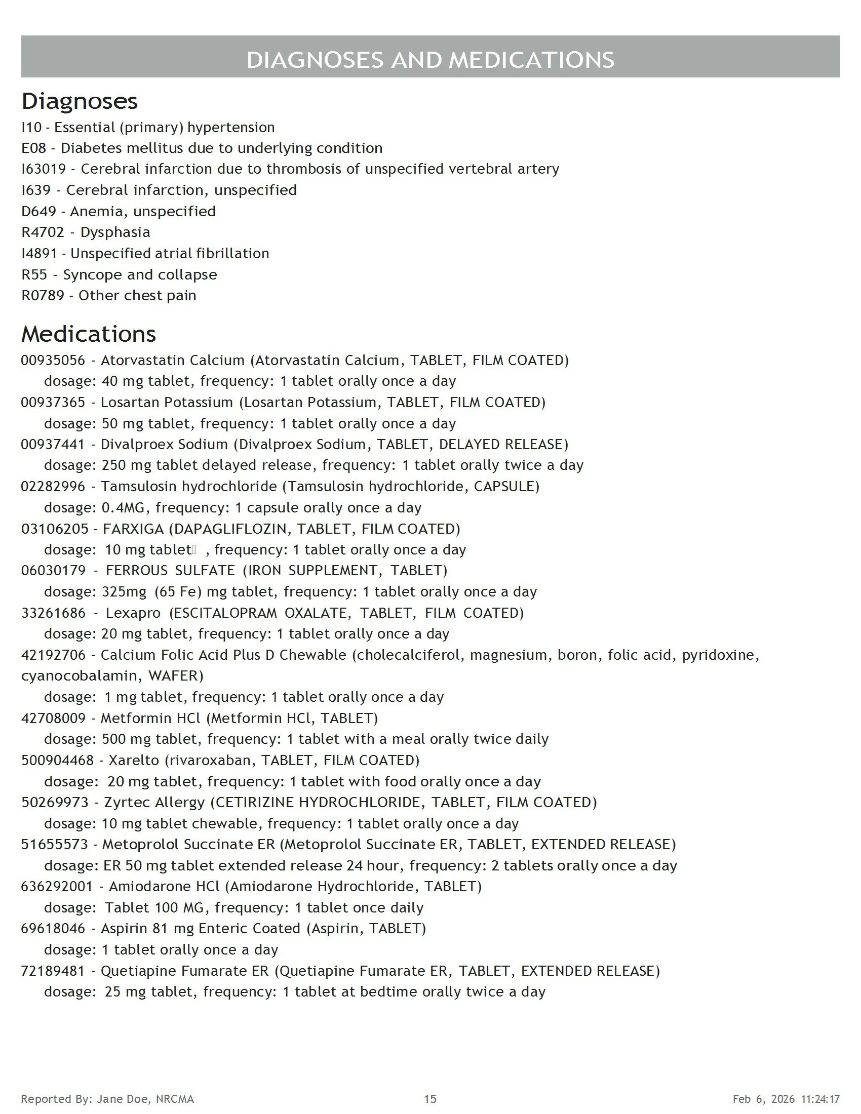 Sample Health Summary Report