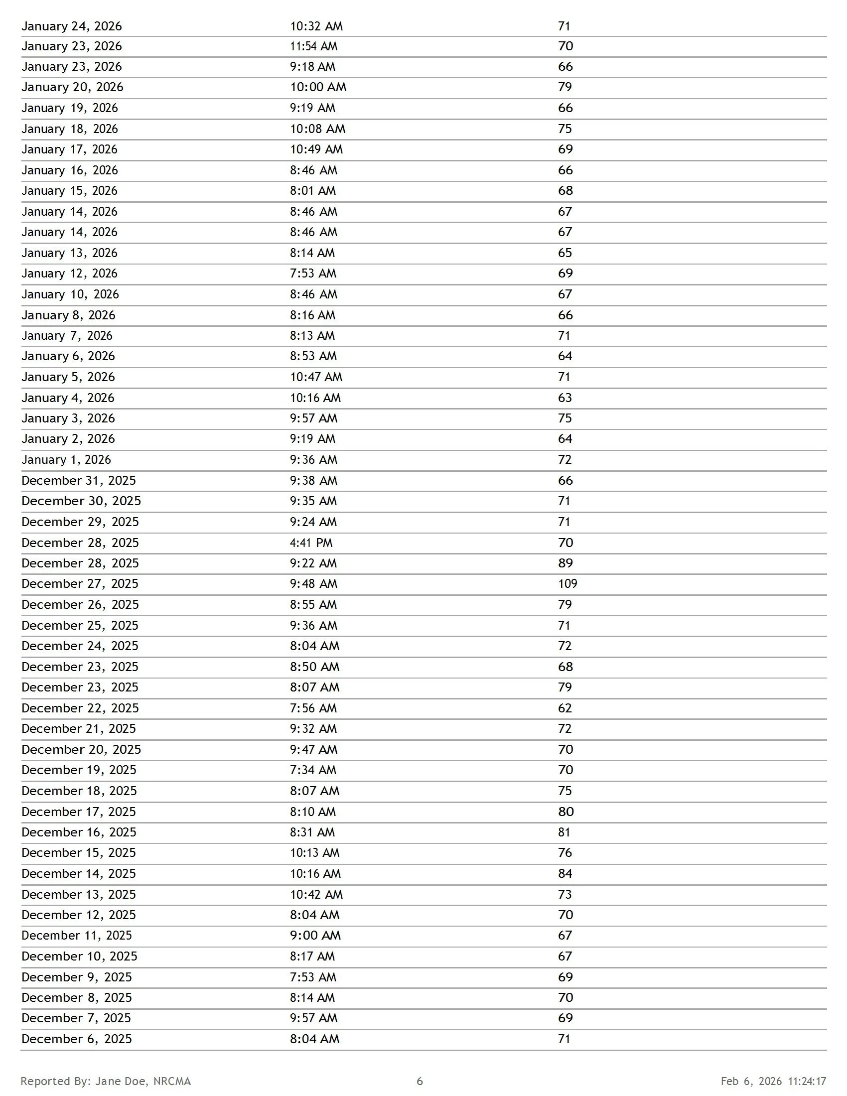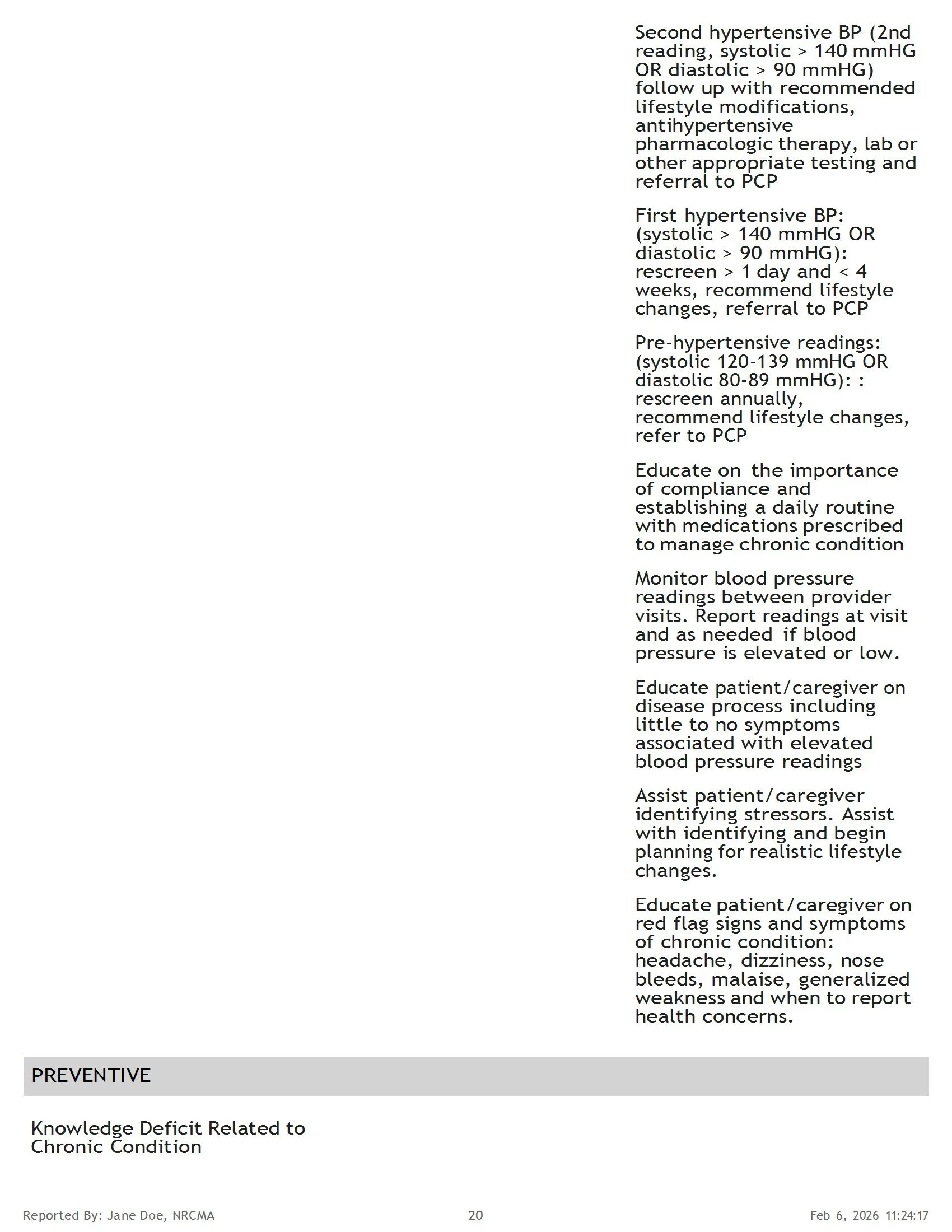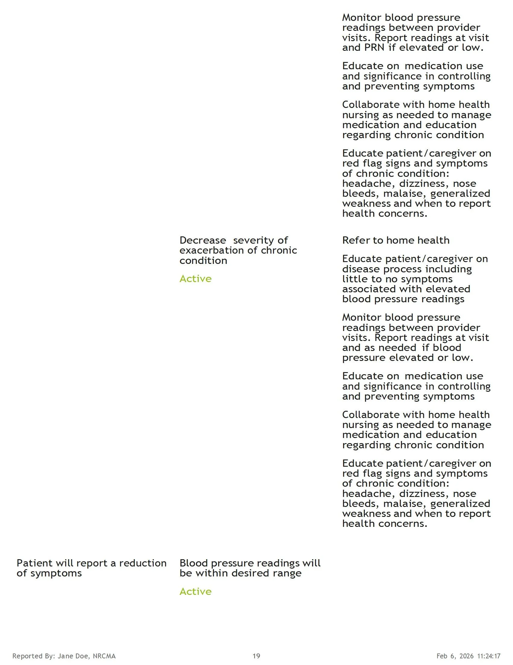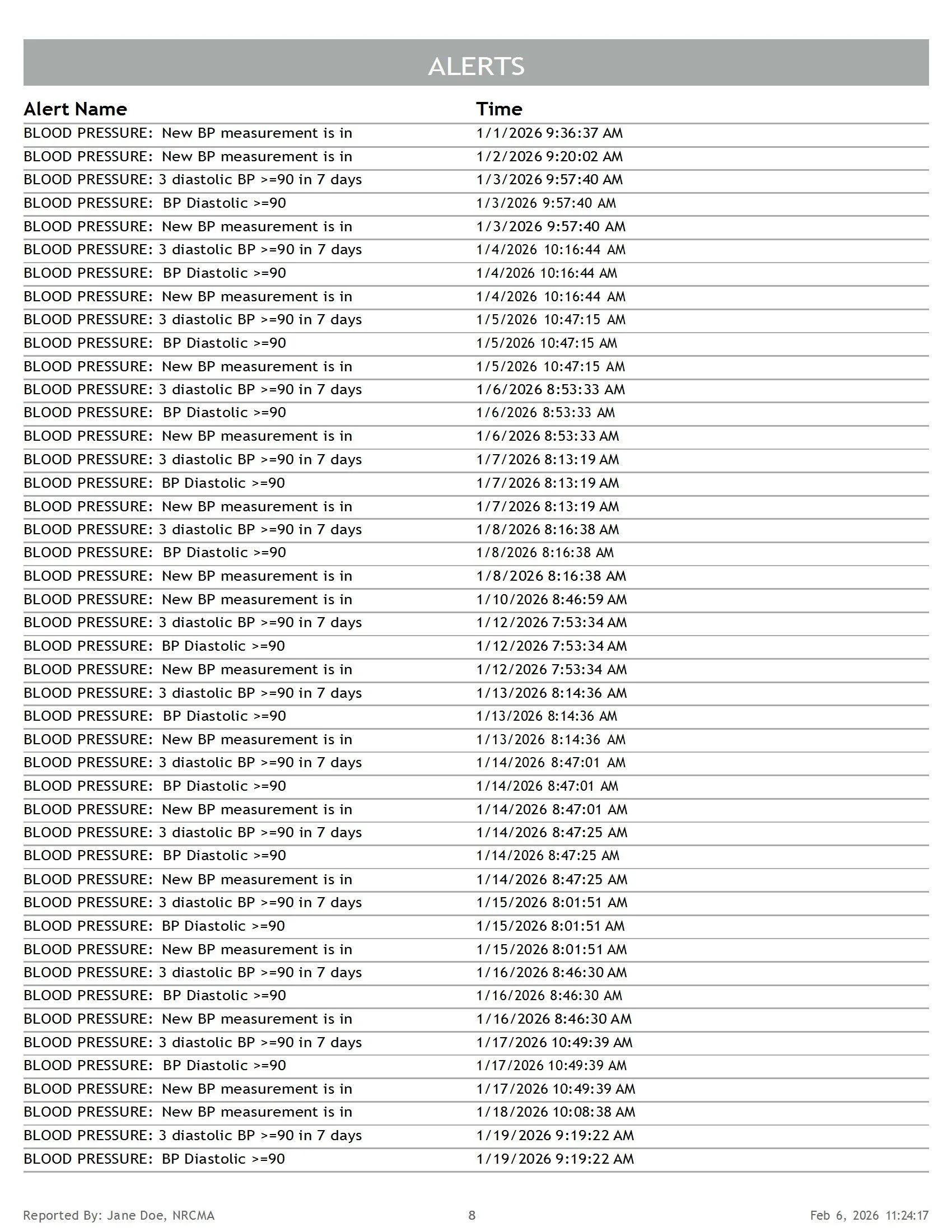 Sample Health Summary Report