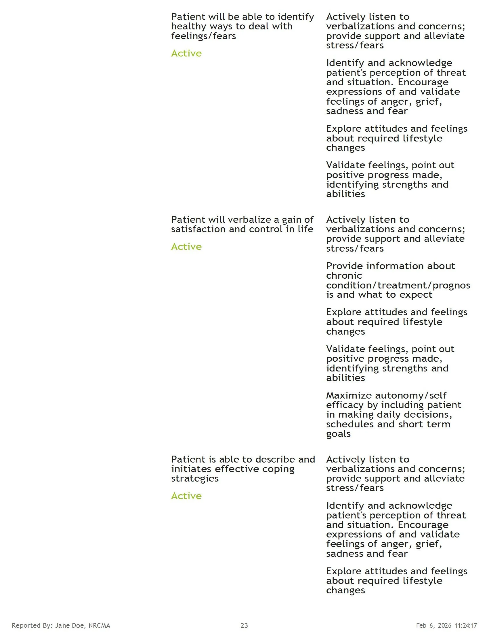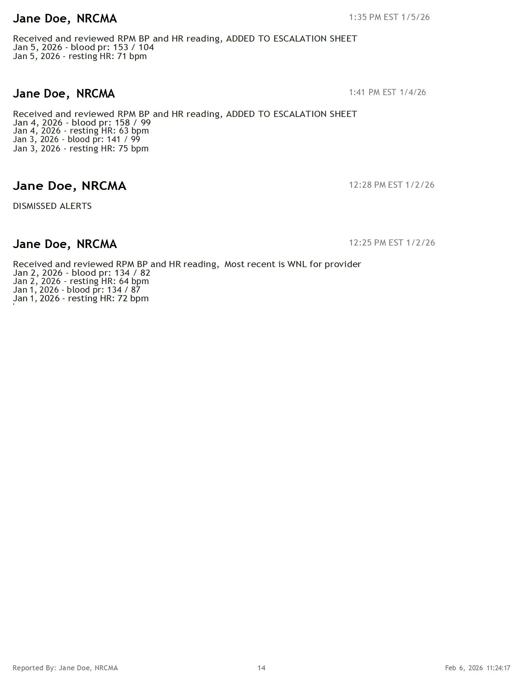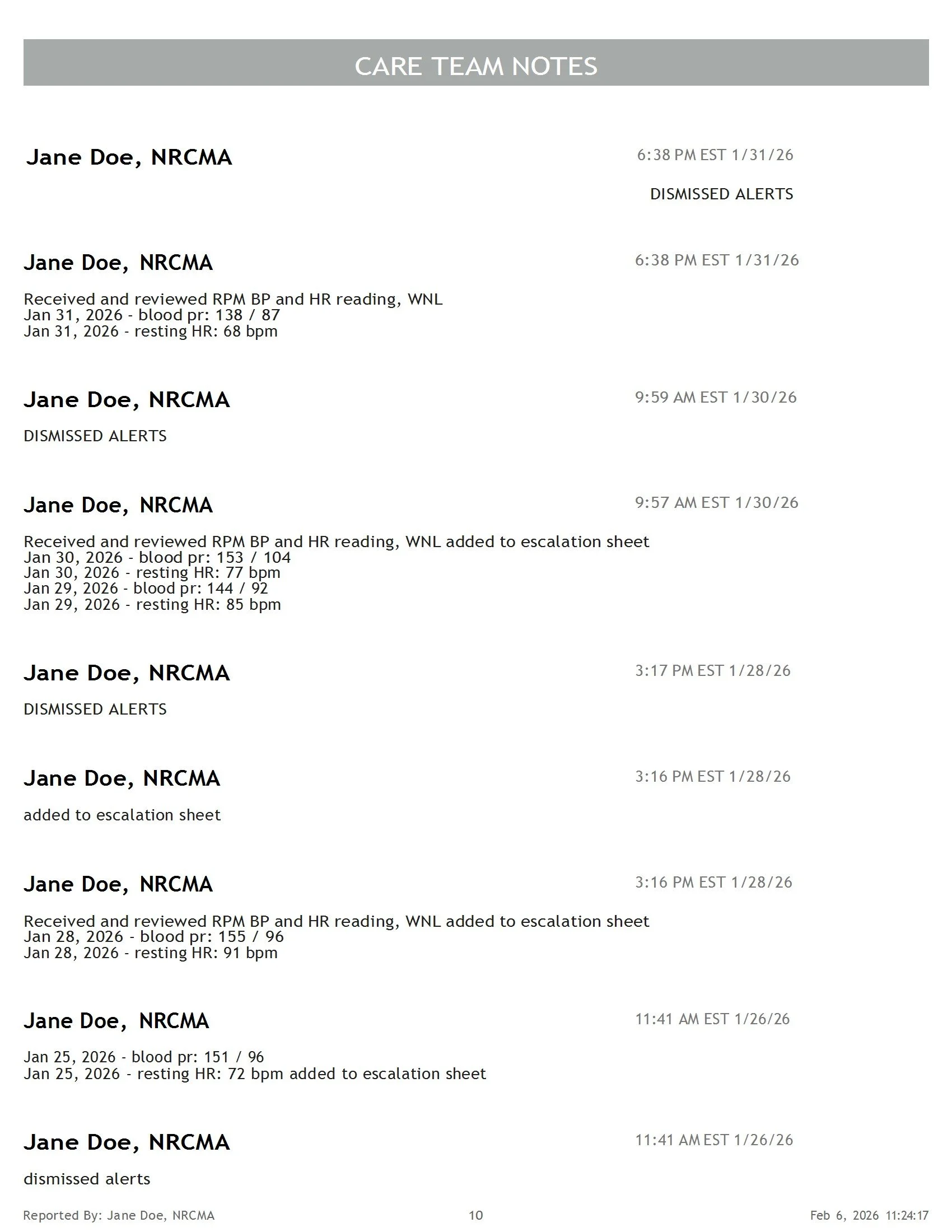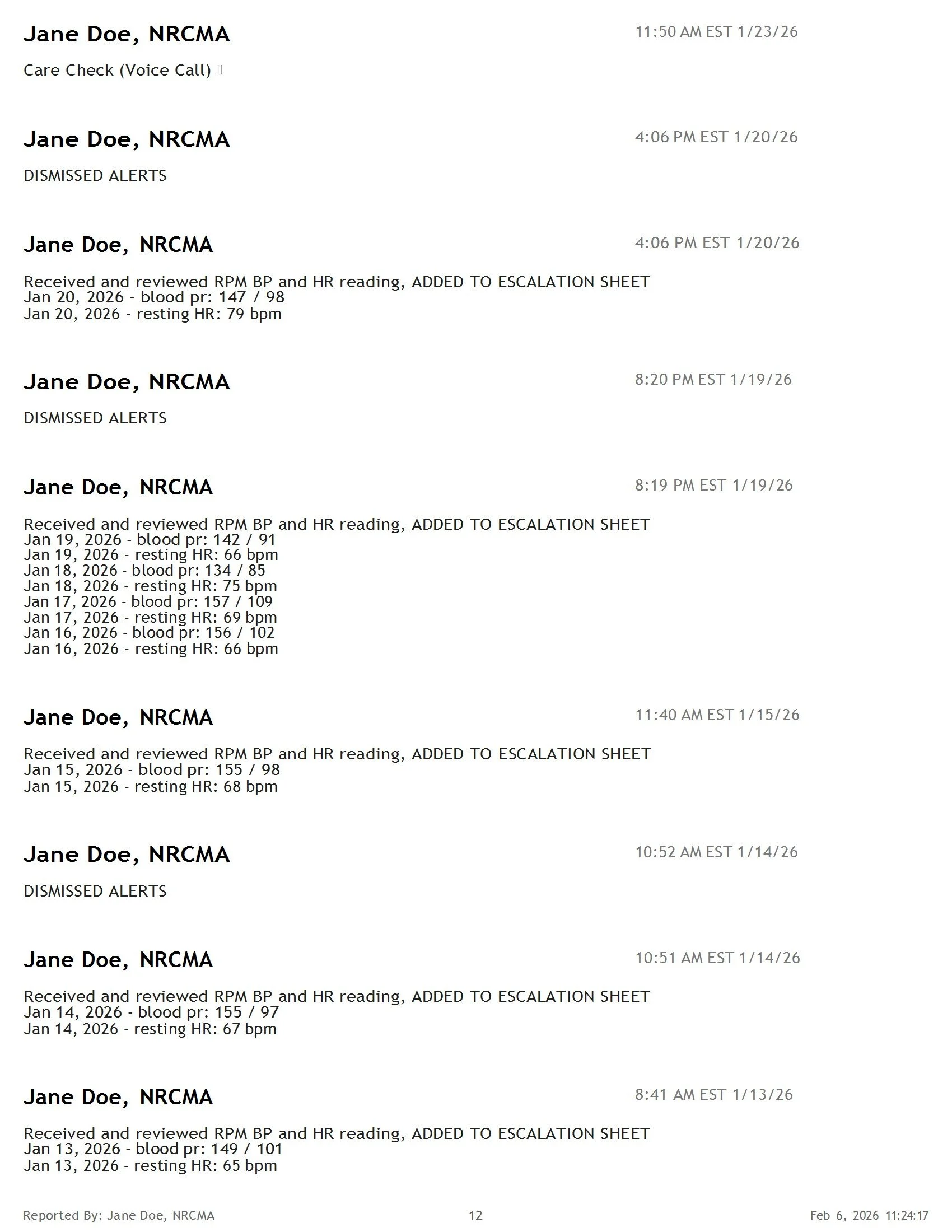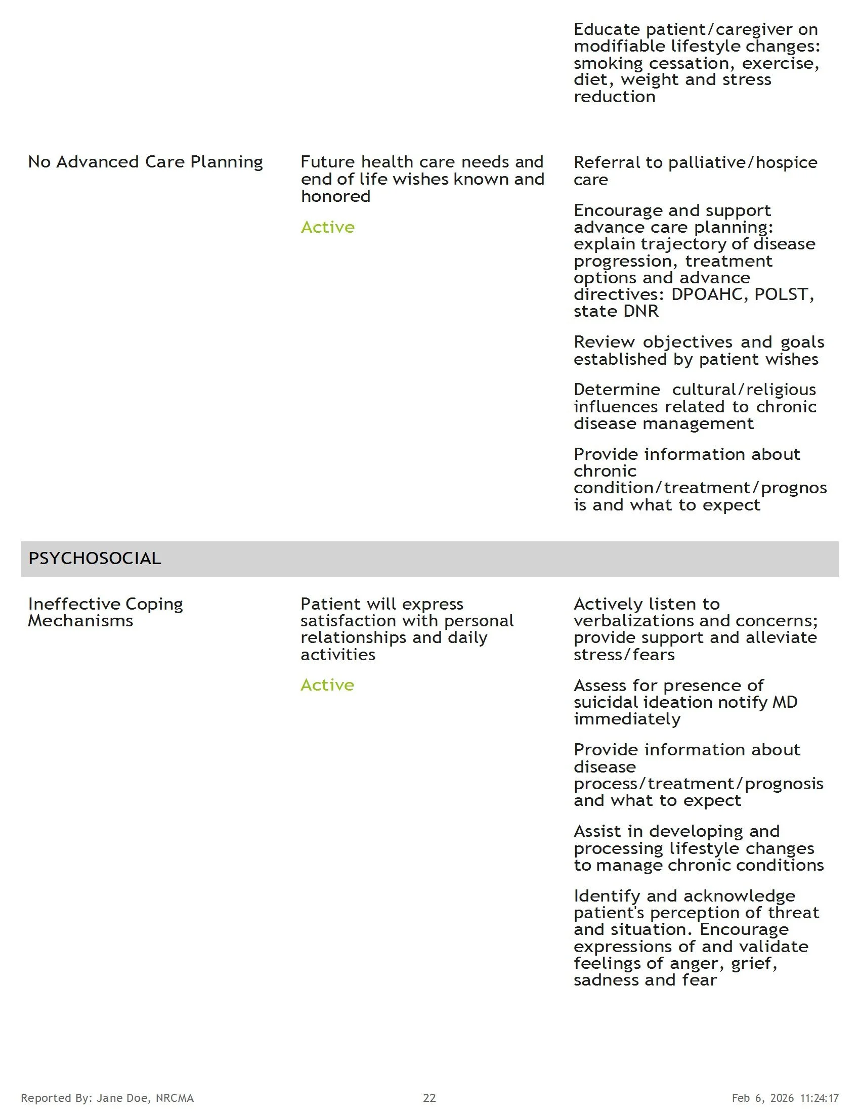 Sample Health Summary Report
